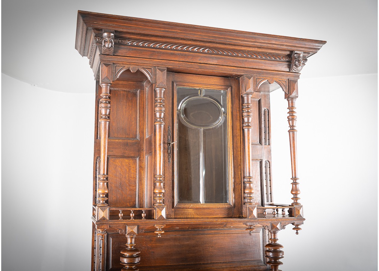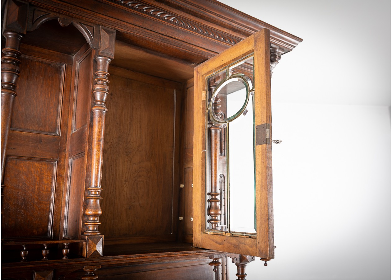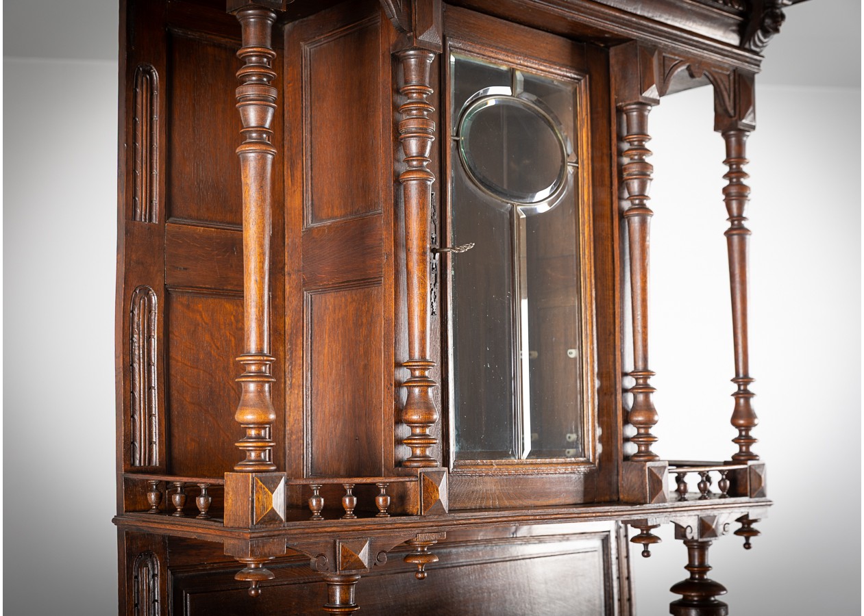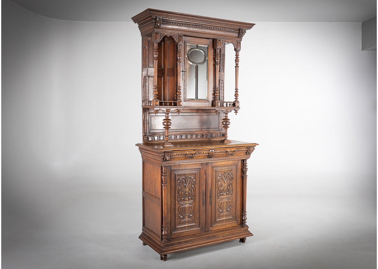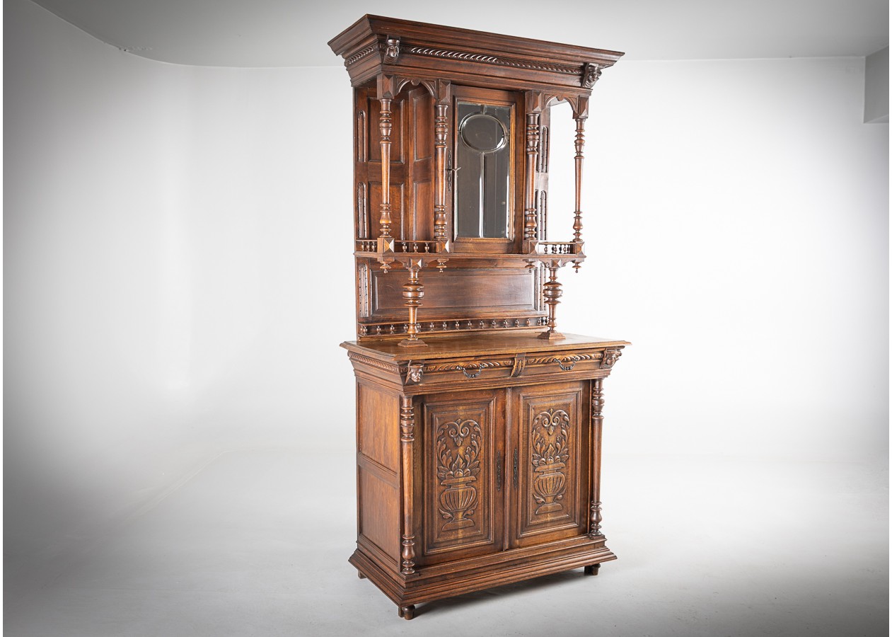 Išskirtinis klasikinio stiliaus bufetas su veidrodžiu, alsuojantis elegancija ir rafinuotumu. Raižytos detalės, kolonos ir šiltas natūralaus medžio atspalvis sukuria prabangų, laikui nepavaldų dizainą. Puikus pasirinkimas norintiems interjerui suteikti solidumo, jaukumo ir išskirtinį charakterį.