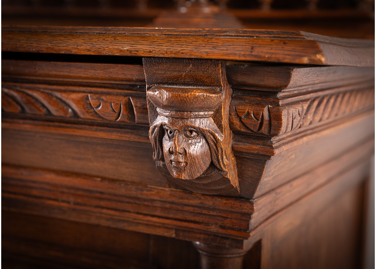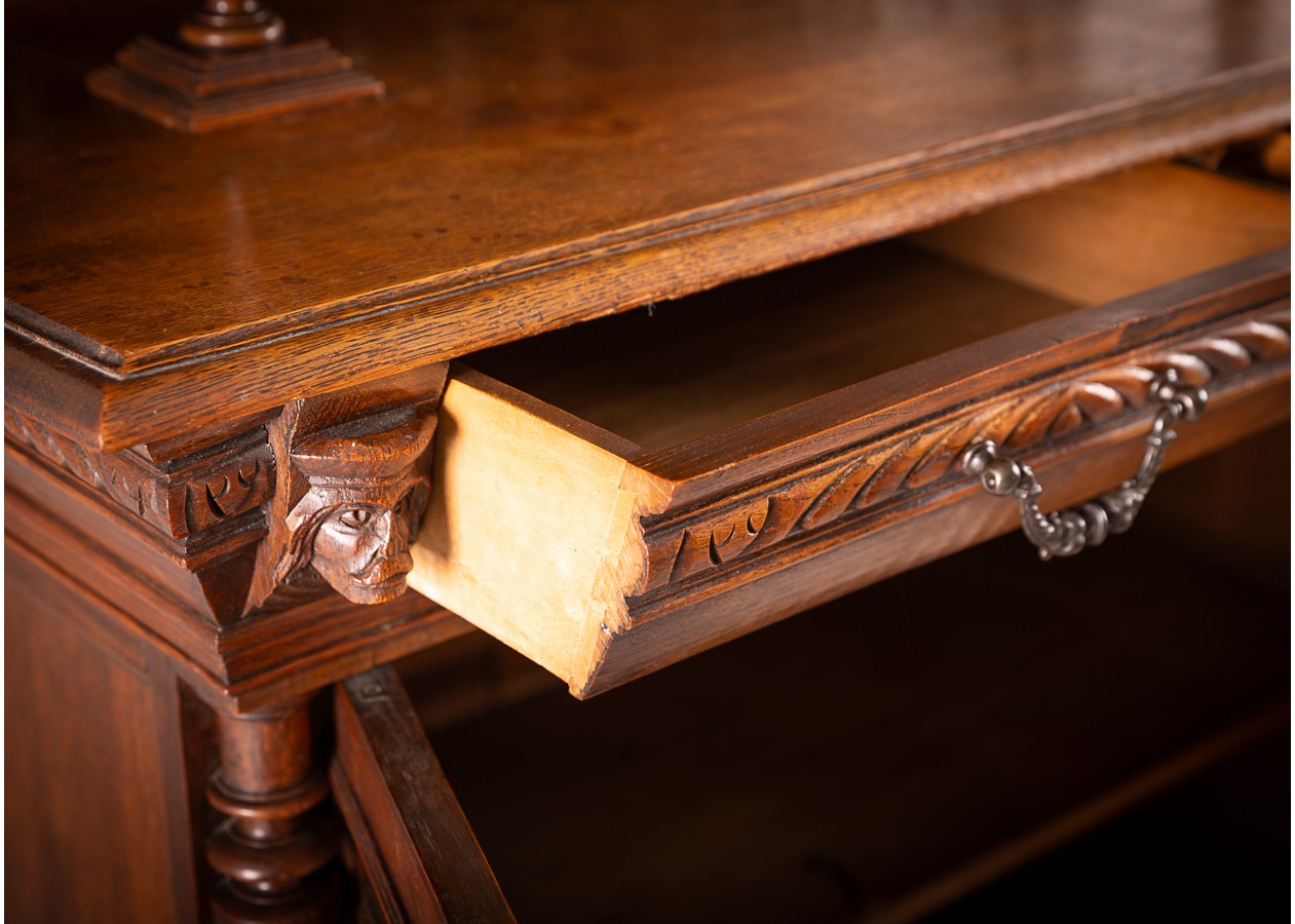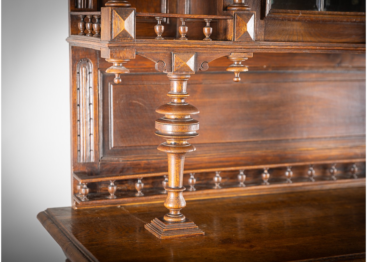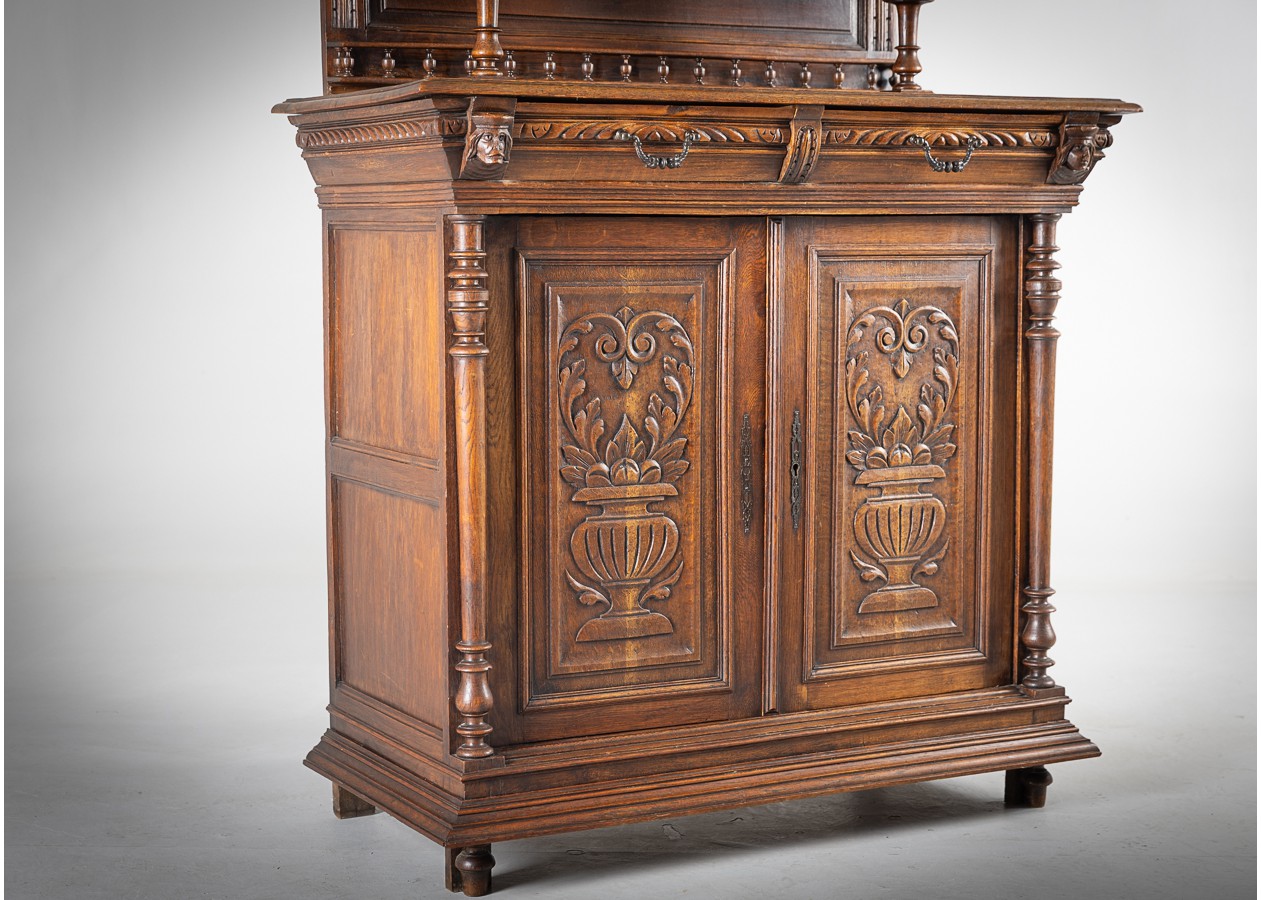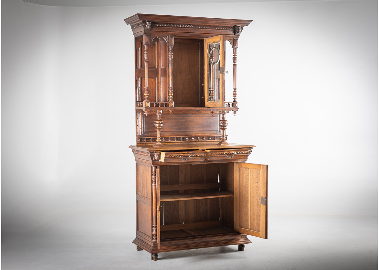 Išskirtinis klasikinio stiliaus bufetas su veidrodžiu, alsuojantis elegancija ir rafinuotumu. Raižytos detalės, kolonos ir šiltas natūralaus medžio atspalvis sukuria prabangų, laikui nepavaldų dizainą. Puikus pasirinkimas norintiems interjerui suteikti solidumo, jaukumo ir išskirtinį charakterį.