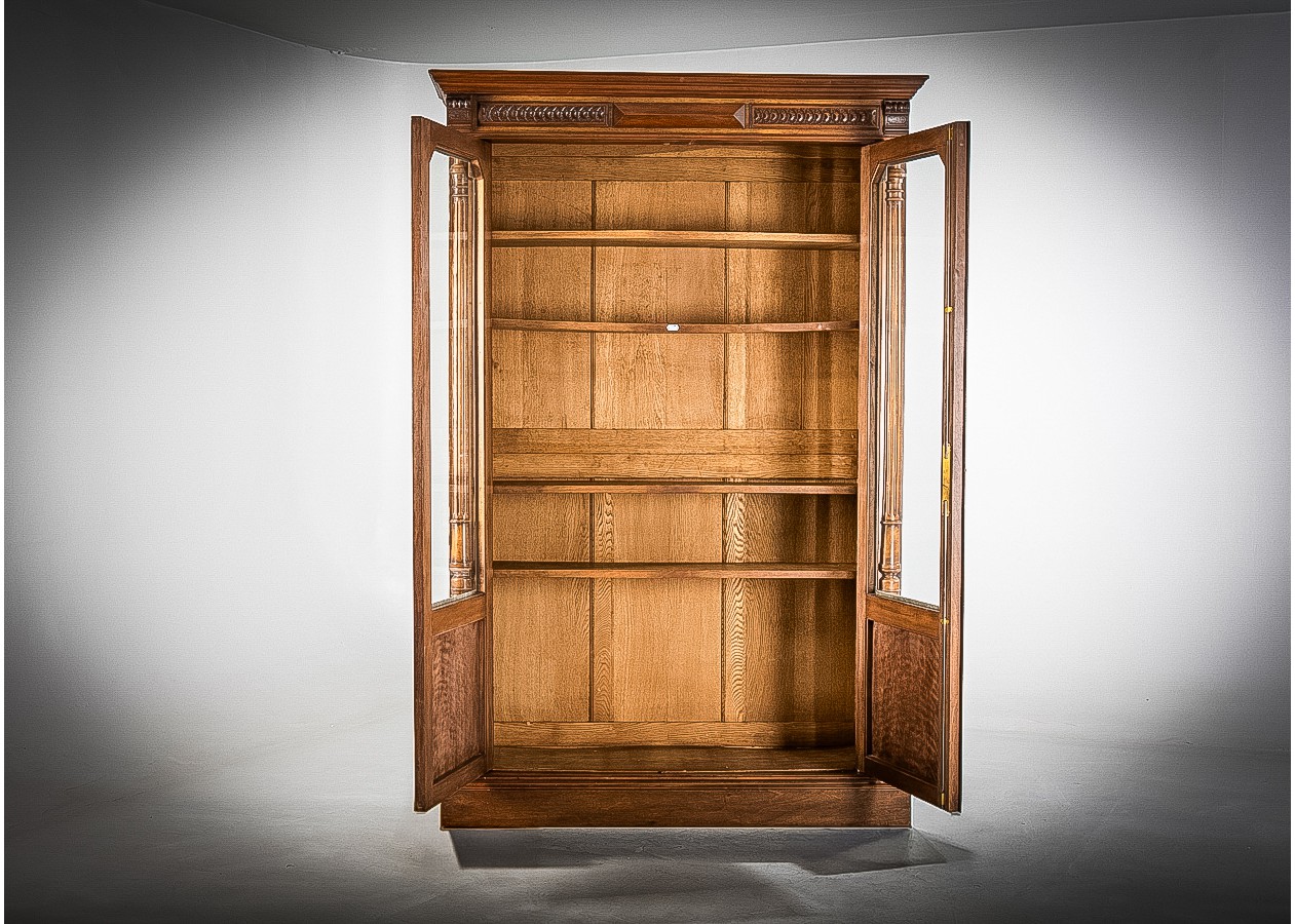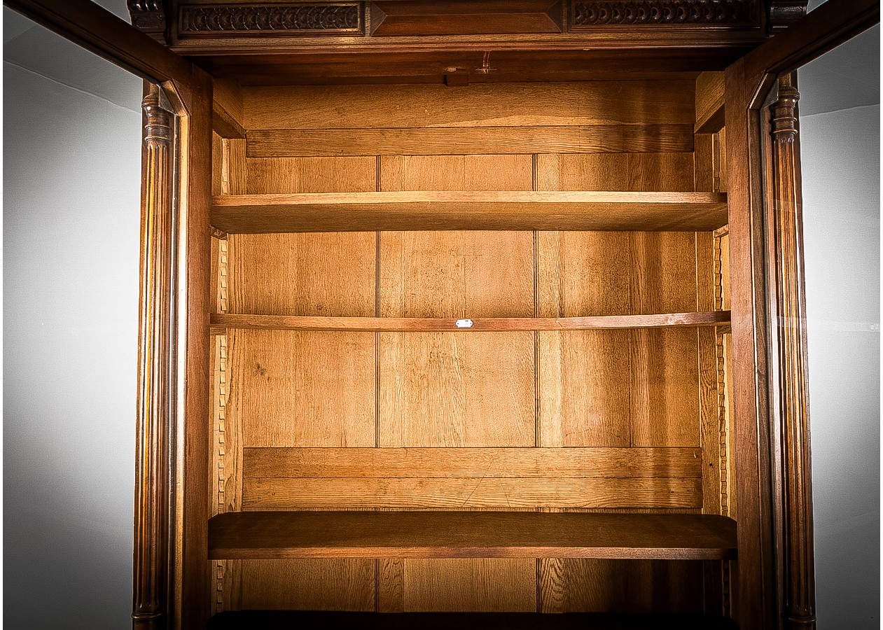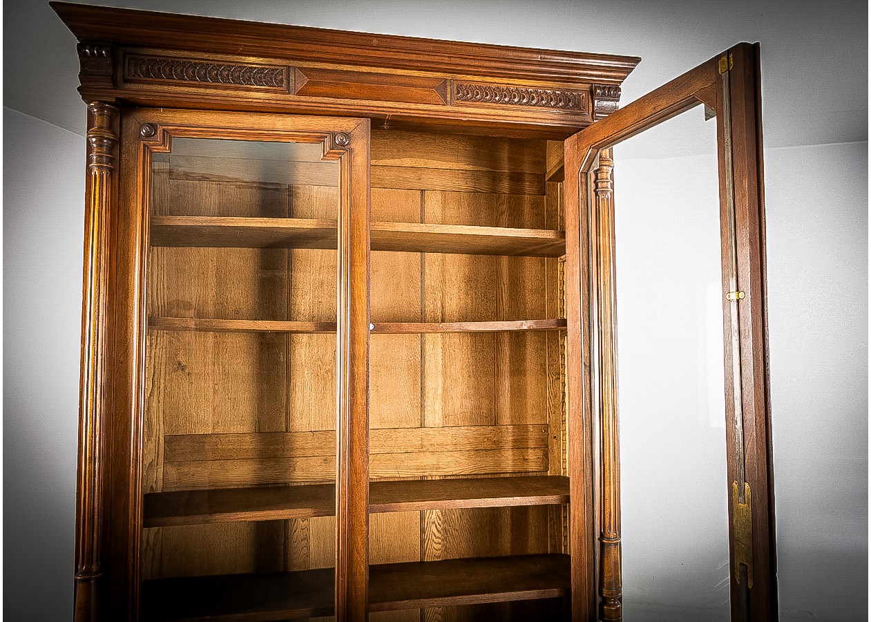 Prabangi medinė knygų spinta su stiklinėmis durimis – charakteringas akcentas namams ar biurui. Kruopščiai išraižytos detalės, sodrus medžio tonas ir solidi konstrukcija kuria išskirtinę atmosferą. Erdviose lentynose patogiai sutalpinsite knygas ar dekorą, o klasikinis dizainas harmoningai derės tiek moderniame, tiek tradiciniame interjere.