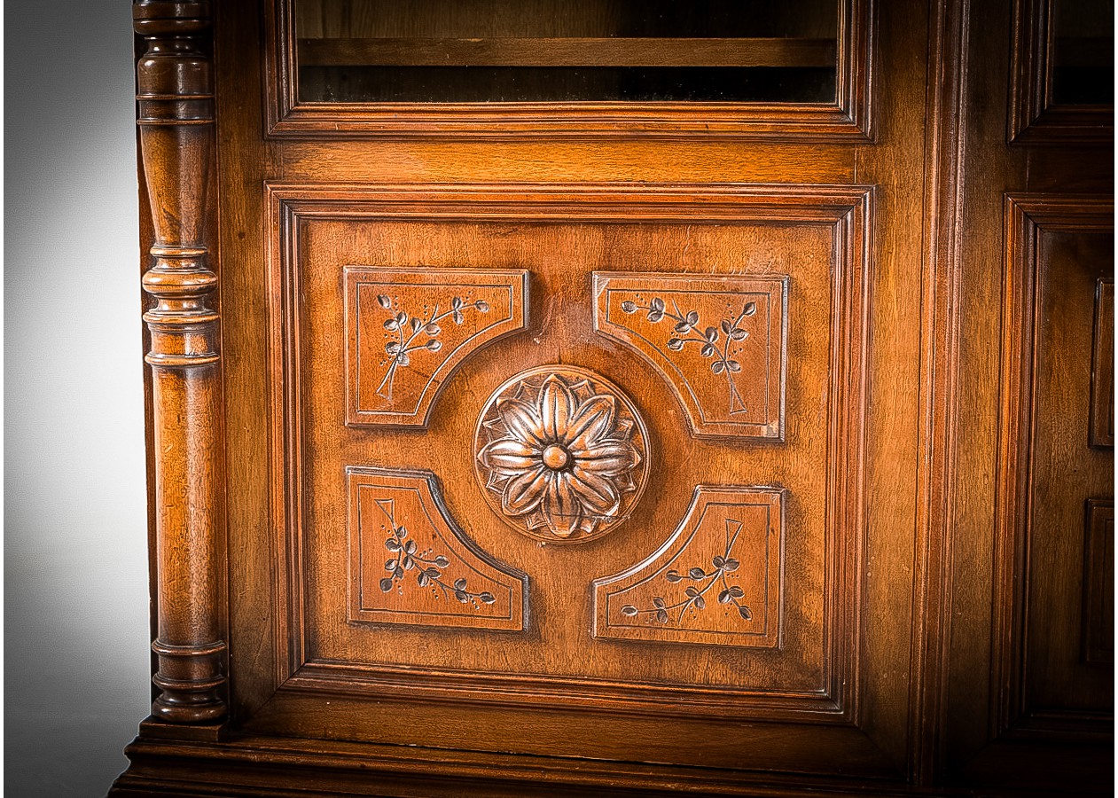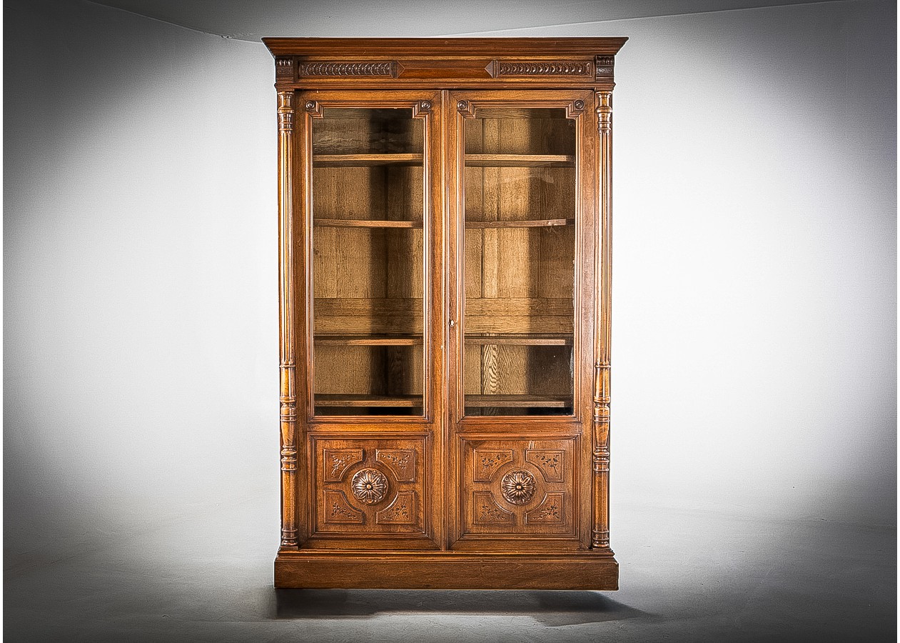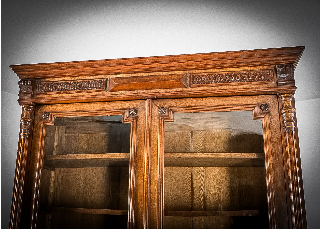 Prabangi medinė knygų spinta su stiklinėmis durimis – charakteringas akcentas namams ar biurui. Kruopščiai išraižytos detalės, sodrus medžio tonas ir solidi konstrukcija kuria išskirtinę atmosferą. Erdviose lentynose patogiai sutalpinsite knygas ar dekorą, o klasikinis dizainas harmoningai derės tiek moderniame, tiek tradiciniame interjere.