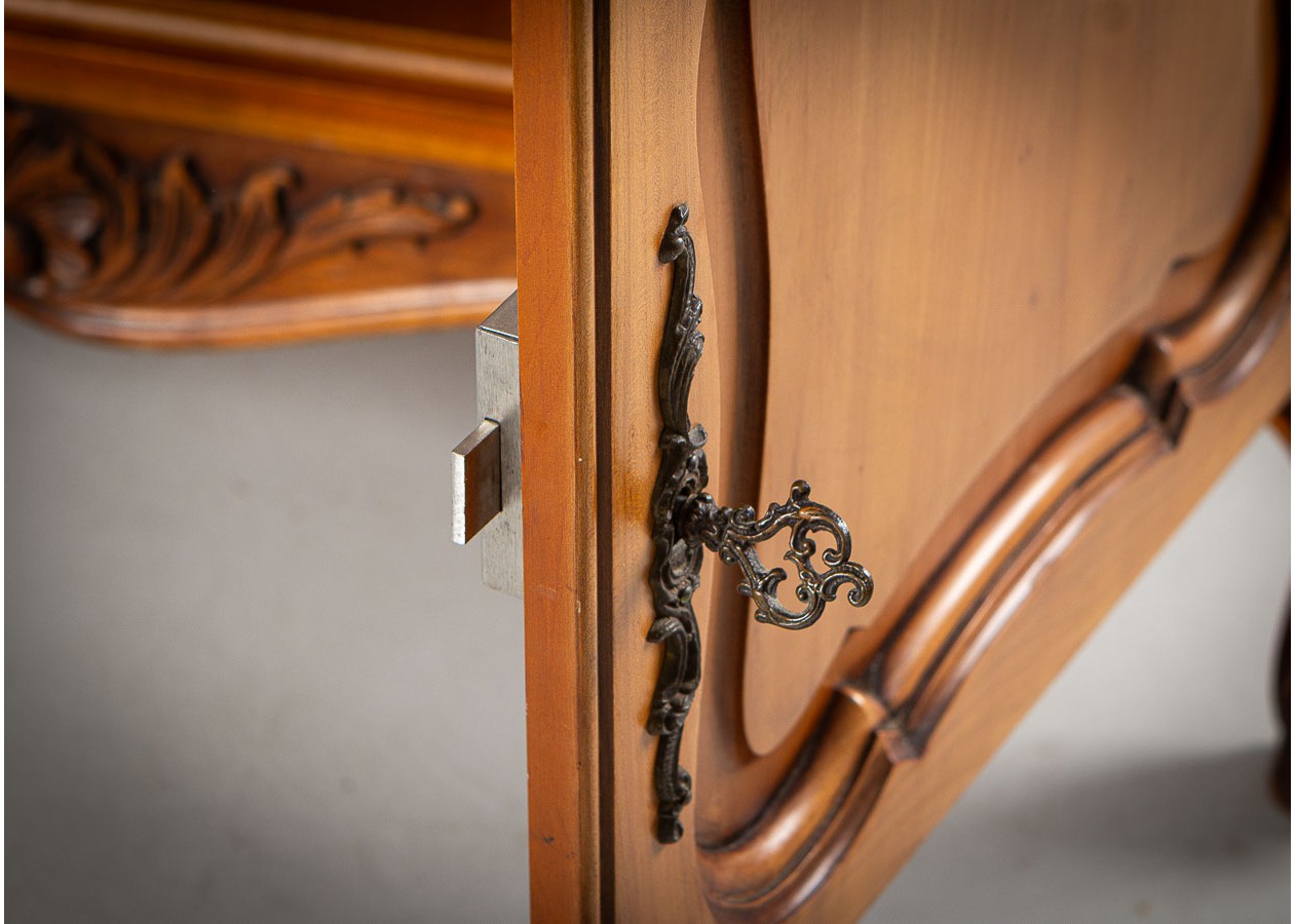Klasikinė medinė komoda – elegancijos akcentas jūsų namams. Išskirtinių formų, puošnių detalių ir šilto medžio atspalvio komoda spinduliuoja prabangą bei laikui nepavaldų stilių. Puikiai tiks svetainei, prieškambariui ar miegamajam – ne tik praktiška, bet ir dekoratyvi interjero detalė.