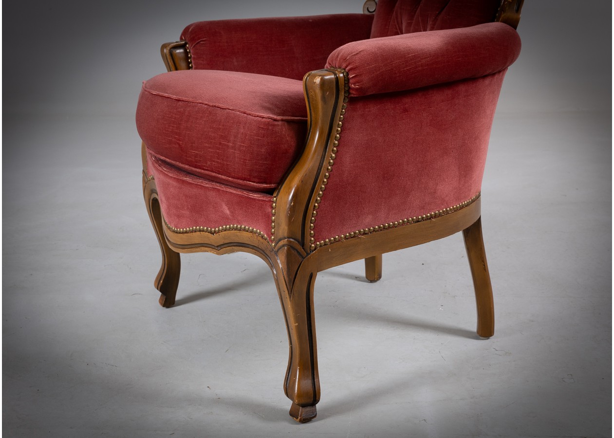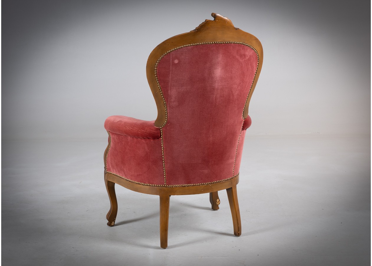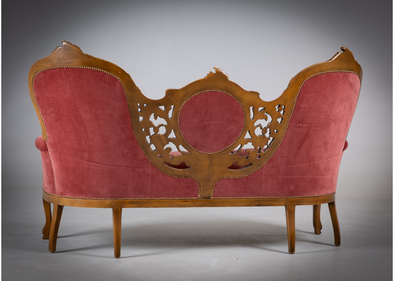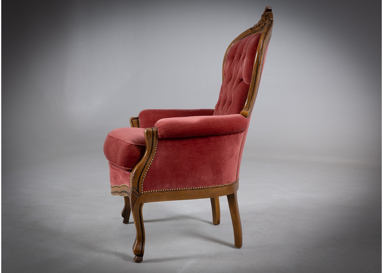 Rafinuotas svetainės baldų komplektas, kuriame klasikinė prabanga susilieja su jaukiu komfortu. Gilios spalvos apmušalai, dailiai sagstyti atlošai ir meniškai raižyti medžio akcentai sukuria iškilmingą, tačiau kviečiančią atmosferą. Tai baldas, kuris ne tik papuošia erdvę, bet ir tampa jos centru.