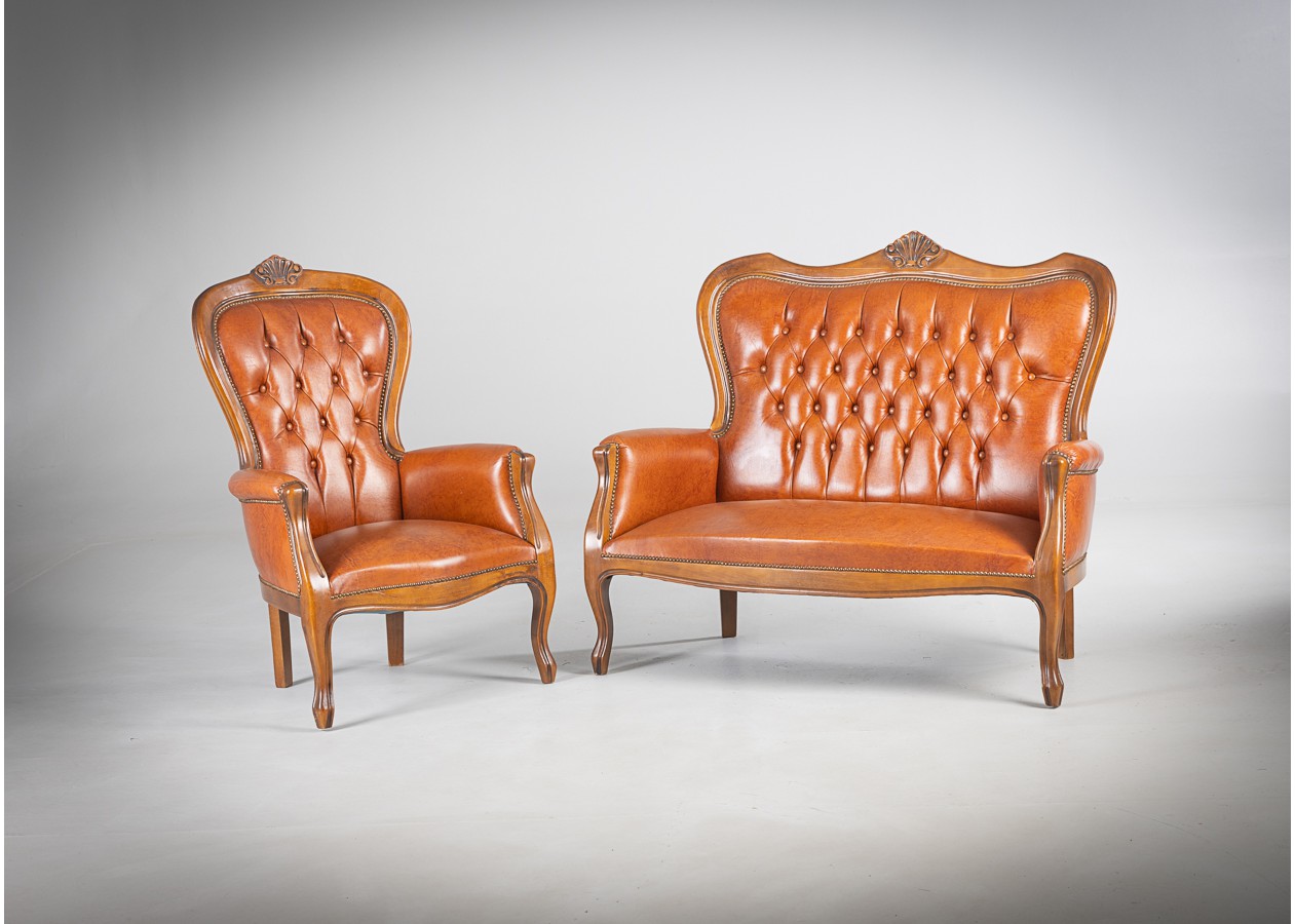 Solidus klasikinis minkštų baldų komplektas, kuris iškart sukuria pasitikėjimo ir komforto pojūtį. Dekoratyvinis sagstymas ir grakščios medinės linijos primena laikus, kai baldai buvo kuriami ilgam ir su charakteriu. Tai komplektas, kuris ne tik patogus kasdieniam poilsiui, bet ir vizualiai stiprus – traukiantis žvilgsnį, kuriantis jaukią, rafinuotą atmosferą ir suteikiantis interjerui solidumo.