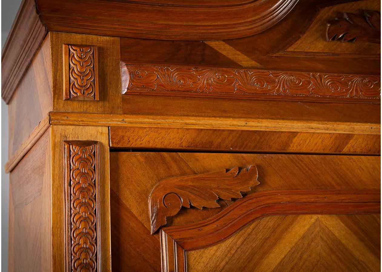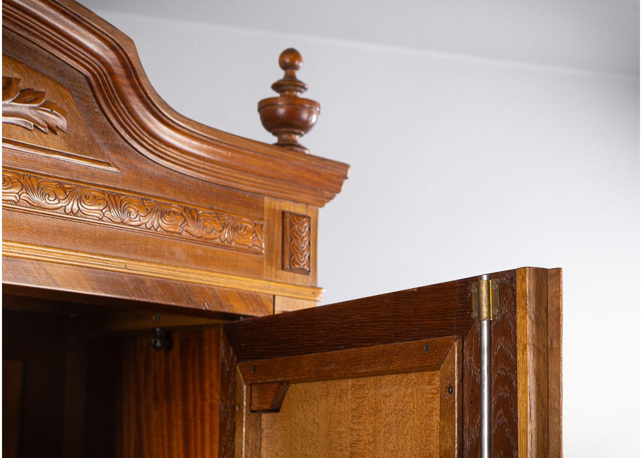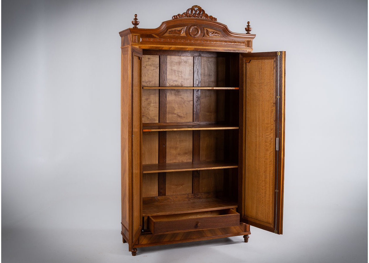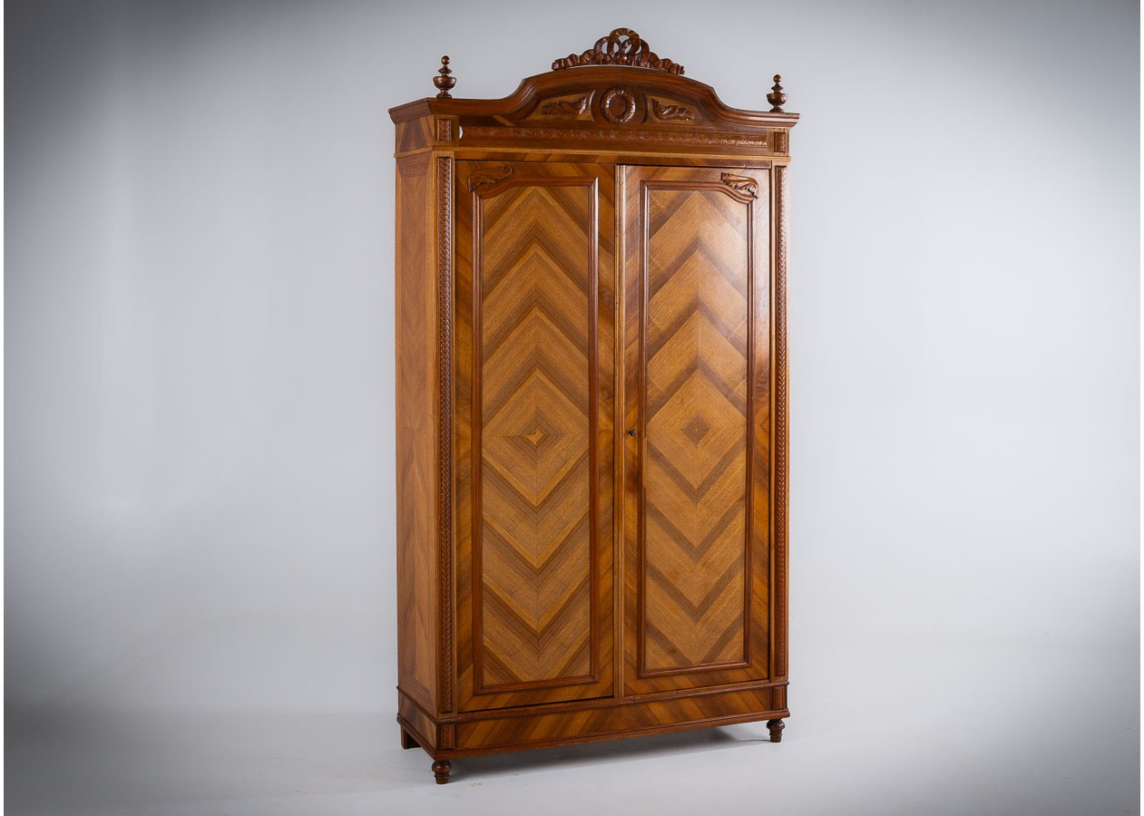Ši įspūdinga spinta–sujungia amžiną eleganciją, precizišką meistrystę ir rafinuotą dizainą.Ji išsiskiria šiltu atspalviu ir išraiškingu geometriniu raštu ant durelių – tai subtilus, tačiau akį traukiantis akcentas.Viduje spinta erdvi ir funkcionali–idealiai tinka drabužiams,tekstilei ar kitiems daiktams laikyti.