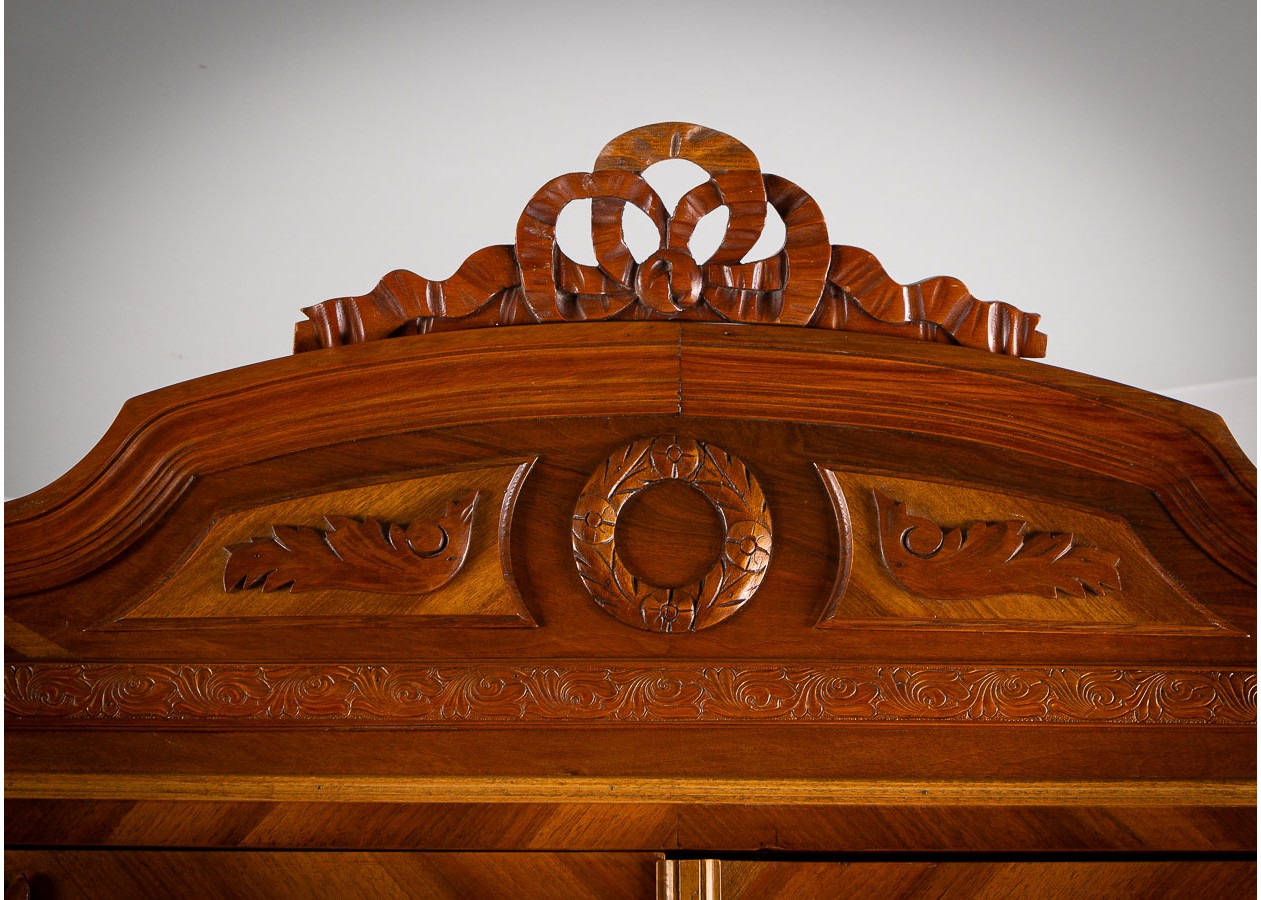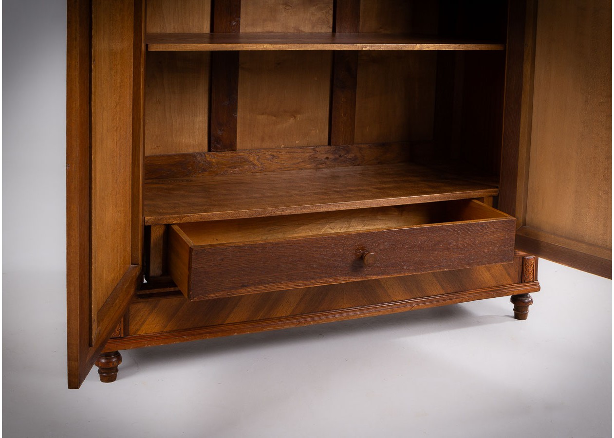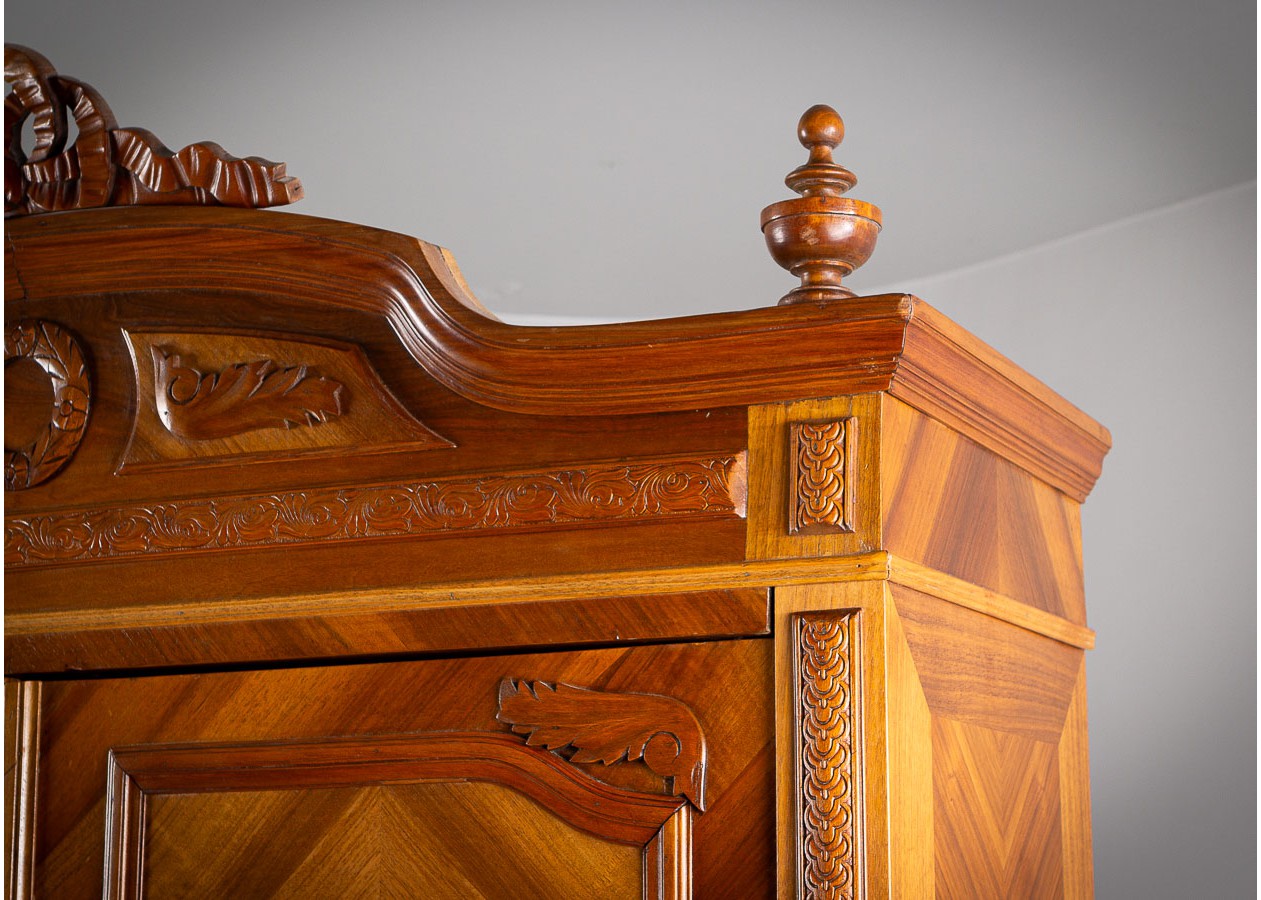 Ši įspūdinga spinta–sujungia amžiną eleganciją, precizišką meistrystę ir rafinuotą dizainą.Ji išsiskiria šiltu atspalviu ir išraiškingu geometriniu raštu ant durelių – tai subtilus, tačiau akį traukiantis akcentas.Viduje spinta erdvi ir funkcionali–idealiai tinka drabužiams,tekstilei ar kitiems daiktams laikyti.