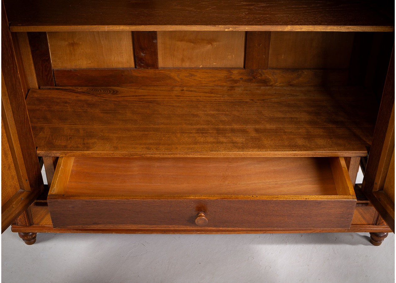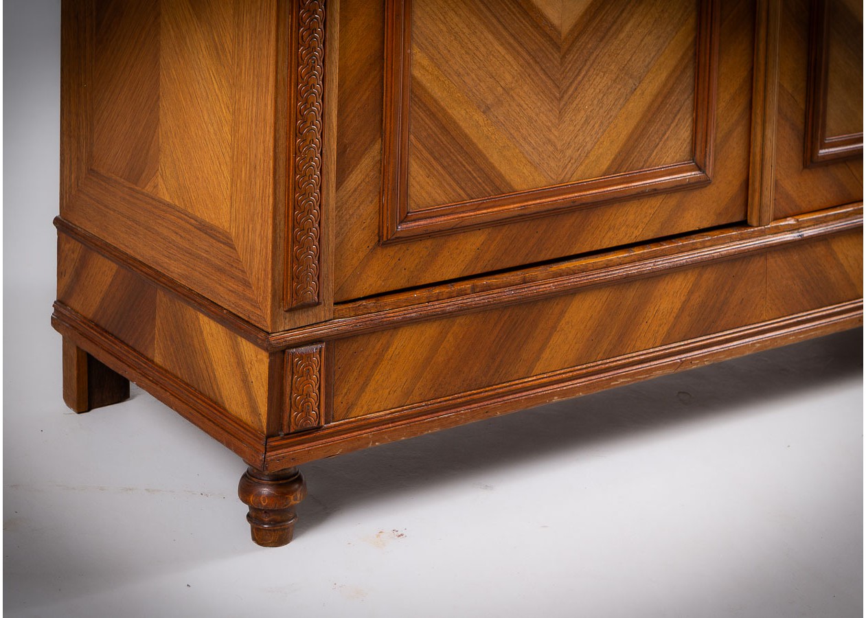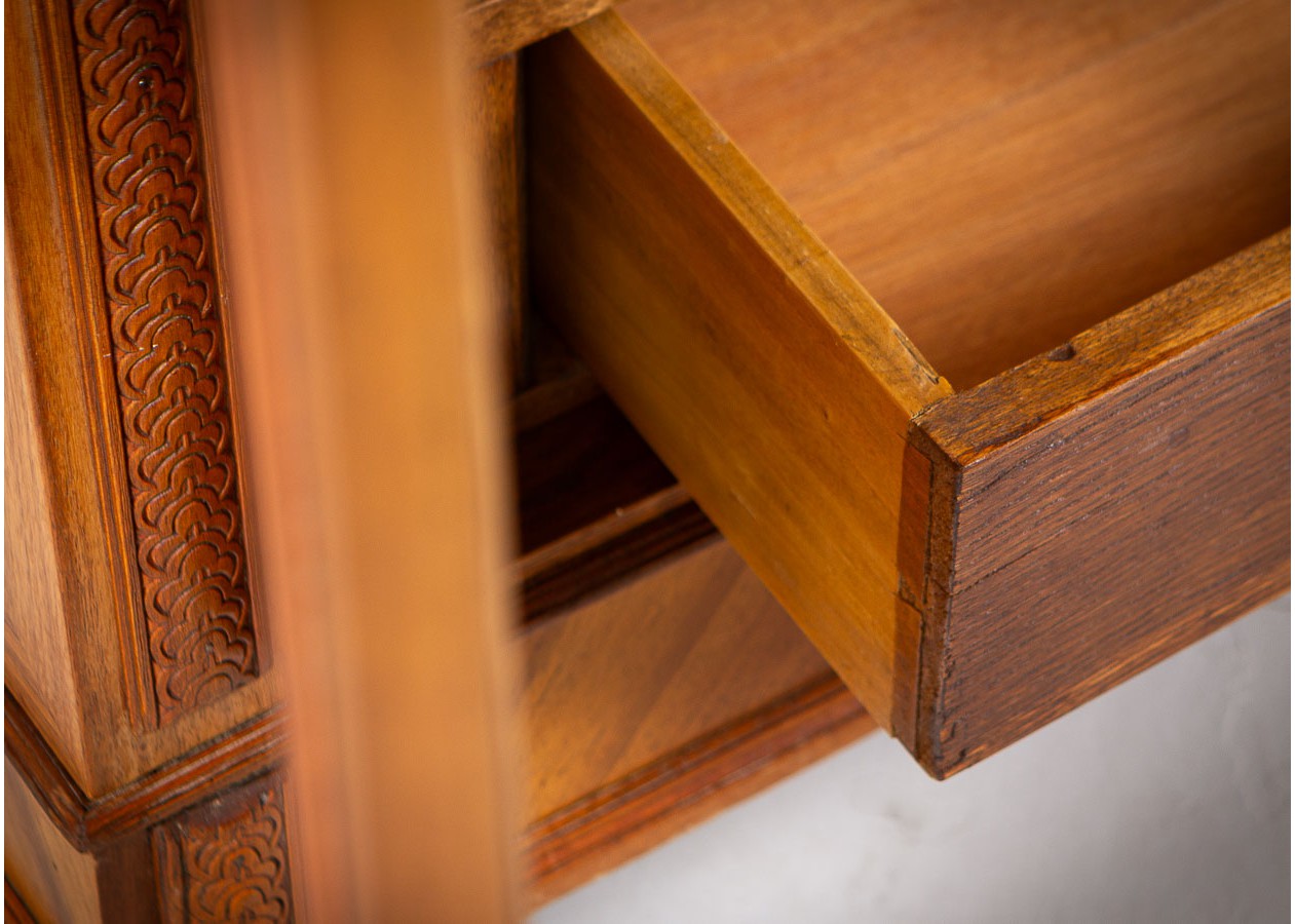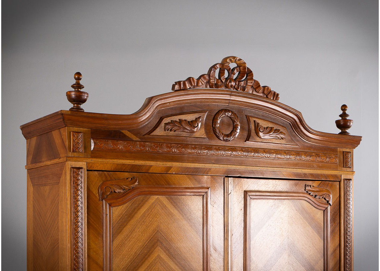 Ši įspūdinga spinta–sujungia amžiną eleganciją, precizišką meistrystę ir rafinuotą dizainą.Ji išsiskiria šiltu atspalviu ir išraiškingu geometriniu raštu ant durelių – tai subtilus, tačiau akį traukiantis akcentas.Viduje spinta erdvi ir funkcionali–idealiai tinka drabužiams,tekstilei ar kitiems daiktams laikyti.
