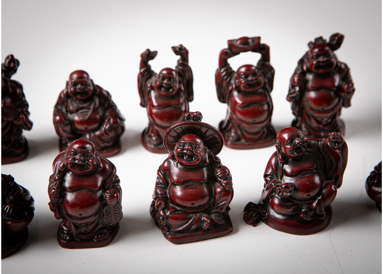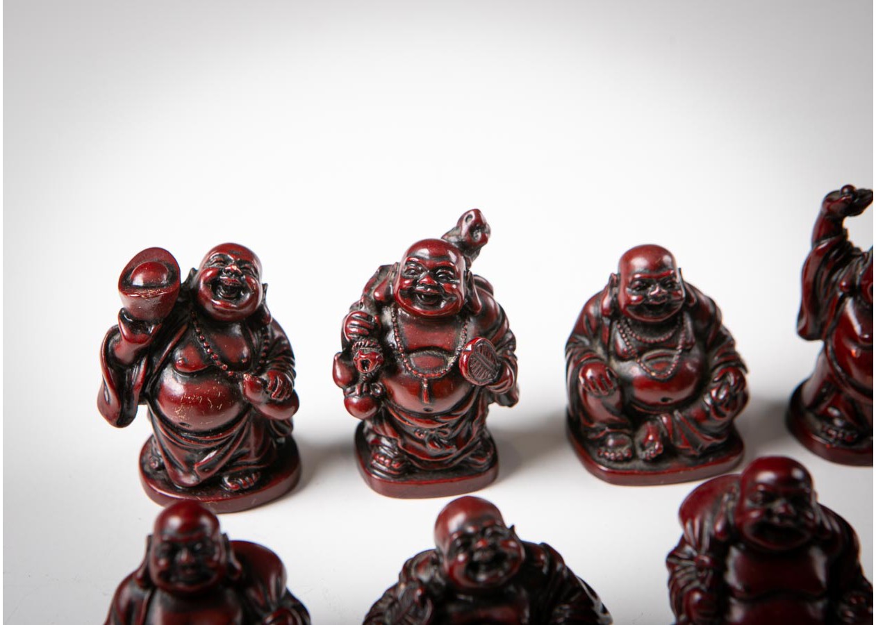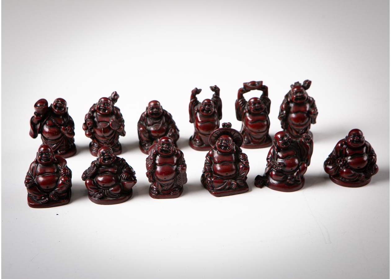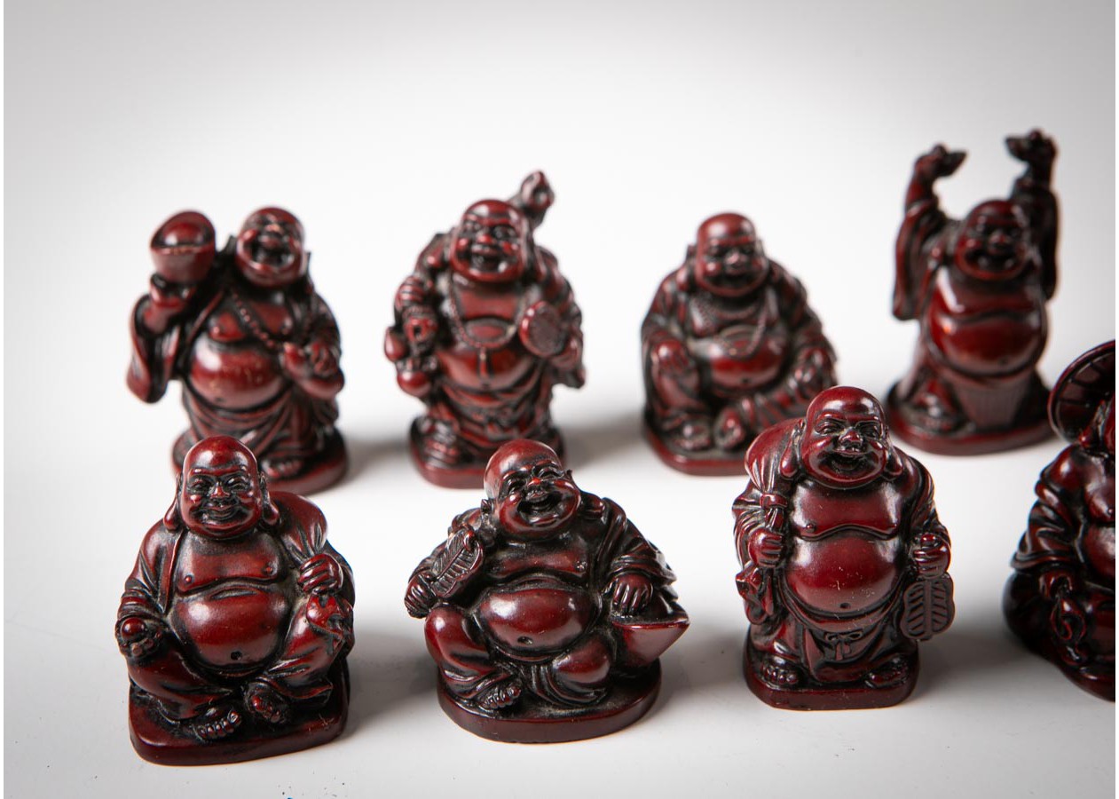 Šis miniatiūrinių Budų rinkinys – tai ramybės, džiaugsmo ir harmonijos simboliai. Kiekviena figūrėlė išraiškinga ir savita, spinduliuoja pozityvią energiją bei šypseną. Puikiai tinka interjerui, meditacijos kampeliui ar kaip prasminga dovana, kviečianti sustoti akimirkai ir pasidžiaugti paprastais dalykais.