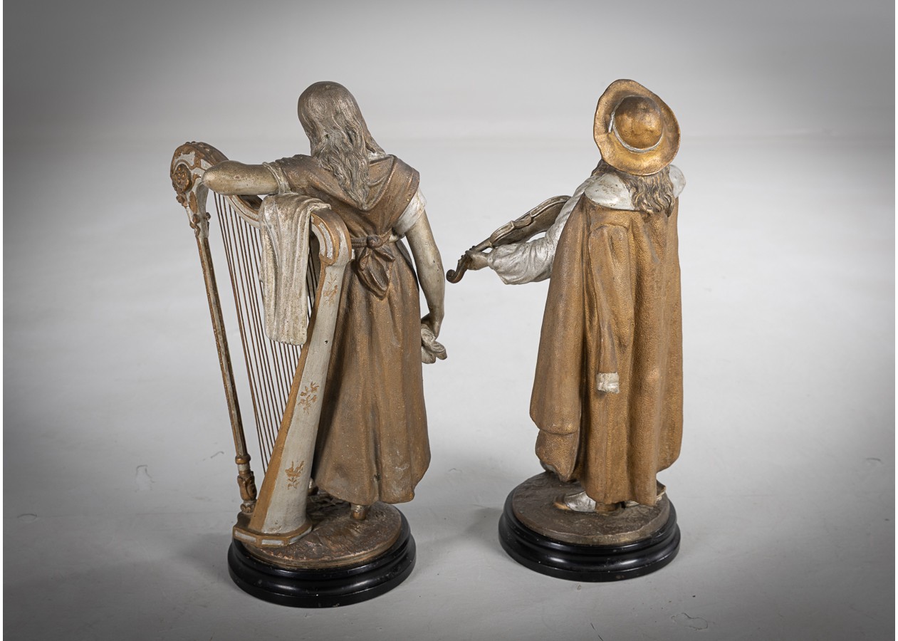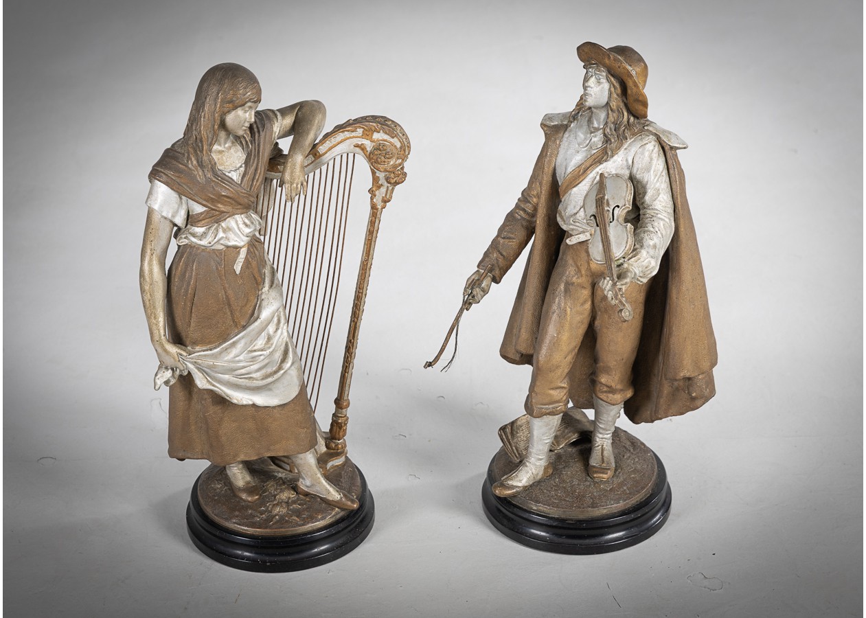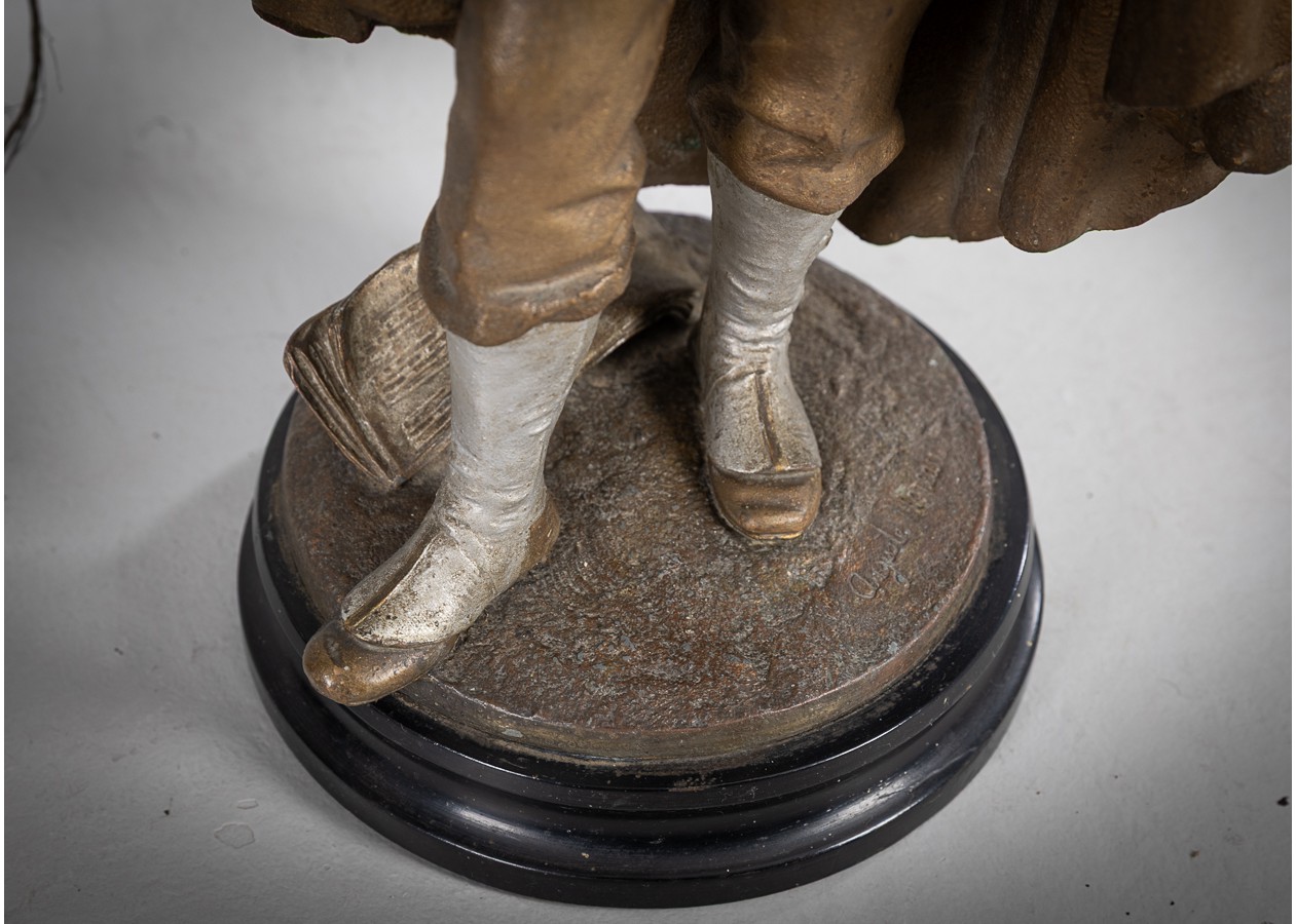 Išraiškingas dviejų figūrų skulptūrų komplektas,pasakojantis istoriją be žodžių.Kruopščiai išdirbtos detalės,gyvos pozos ir subtili patina suteikia figūroms charakterio ir emocijos.Tai ne masinės gamybos dekoras,o daiktai,kurie traukia žvilgsnį ir kviečia sustoti–pastebėti veidus,judesį, nuotaiką. Puikus pasirinkimas ieškantiems interjero akcento su menine verte ir stipriu vizualiniu poveikiu.